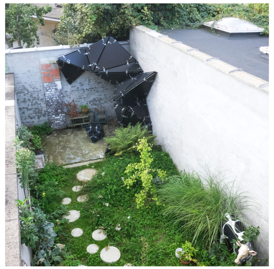 De installatie 'Connecting Triangles', die gebouwd is voor BAD (Belgian Art en Design), is de eerste volledig vrijstaande constructie die gebaseerd is op de Surface-Hinge constructiemethode.